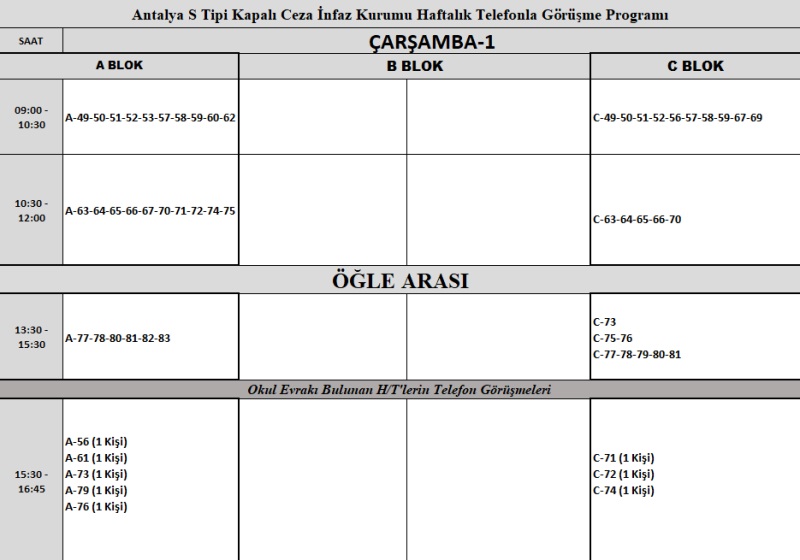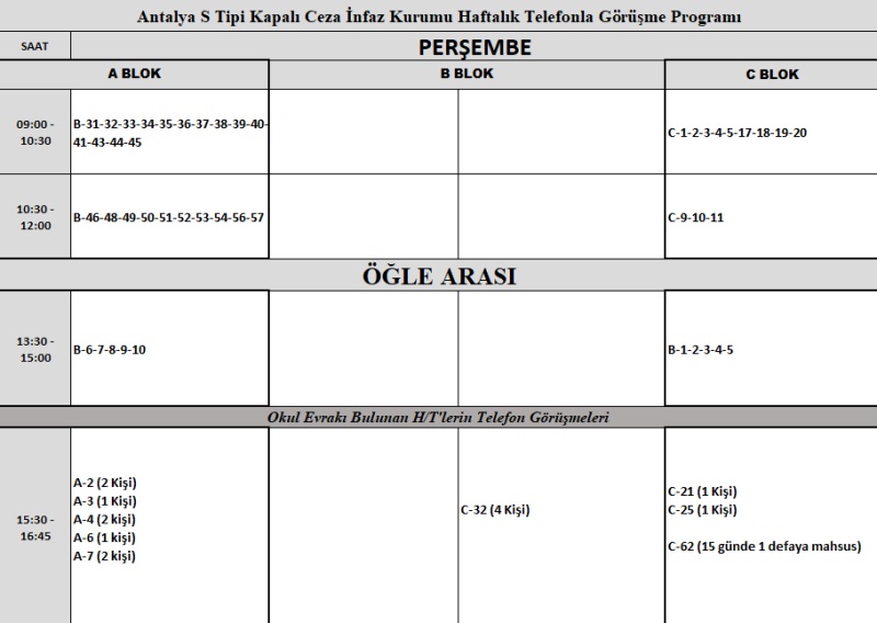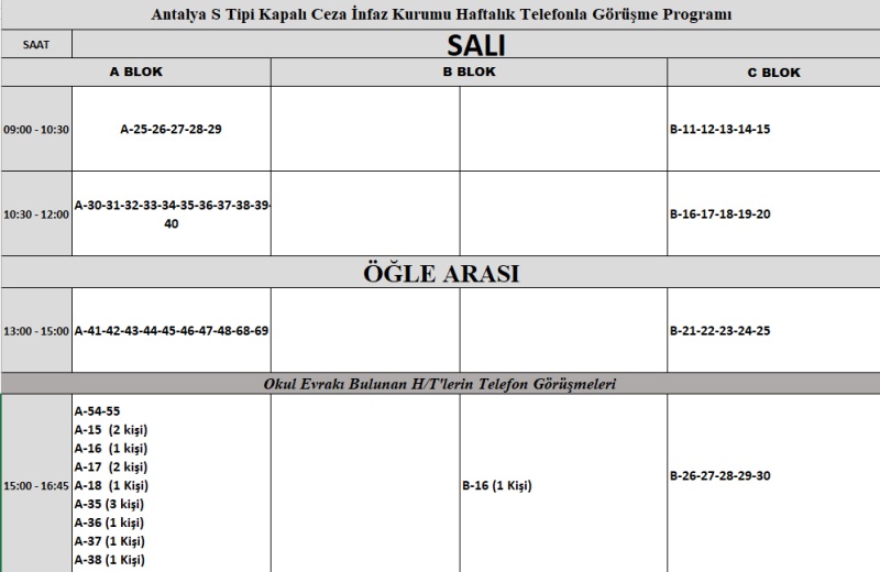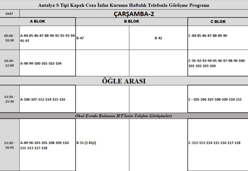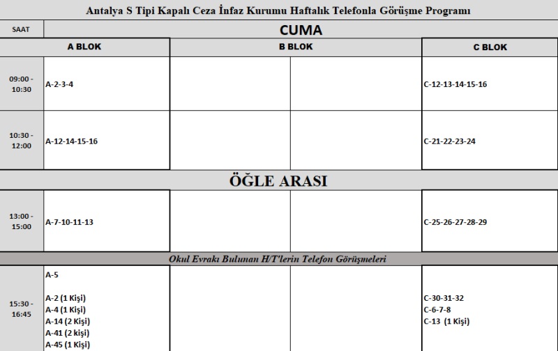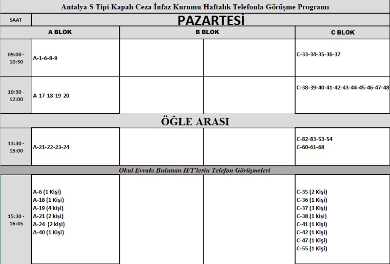 HAFTALIK TELEFONLA GÖRÜŞME PROGRAMI